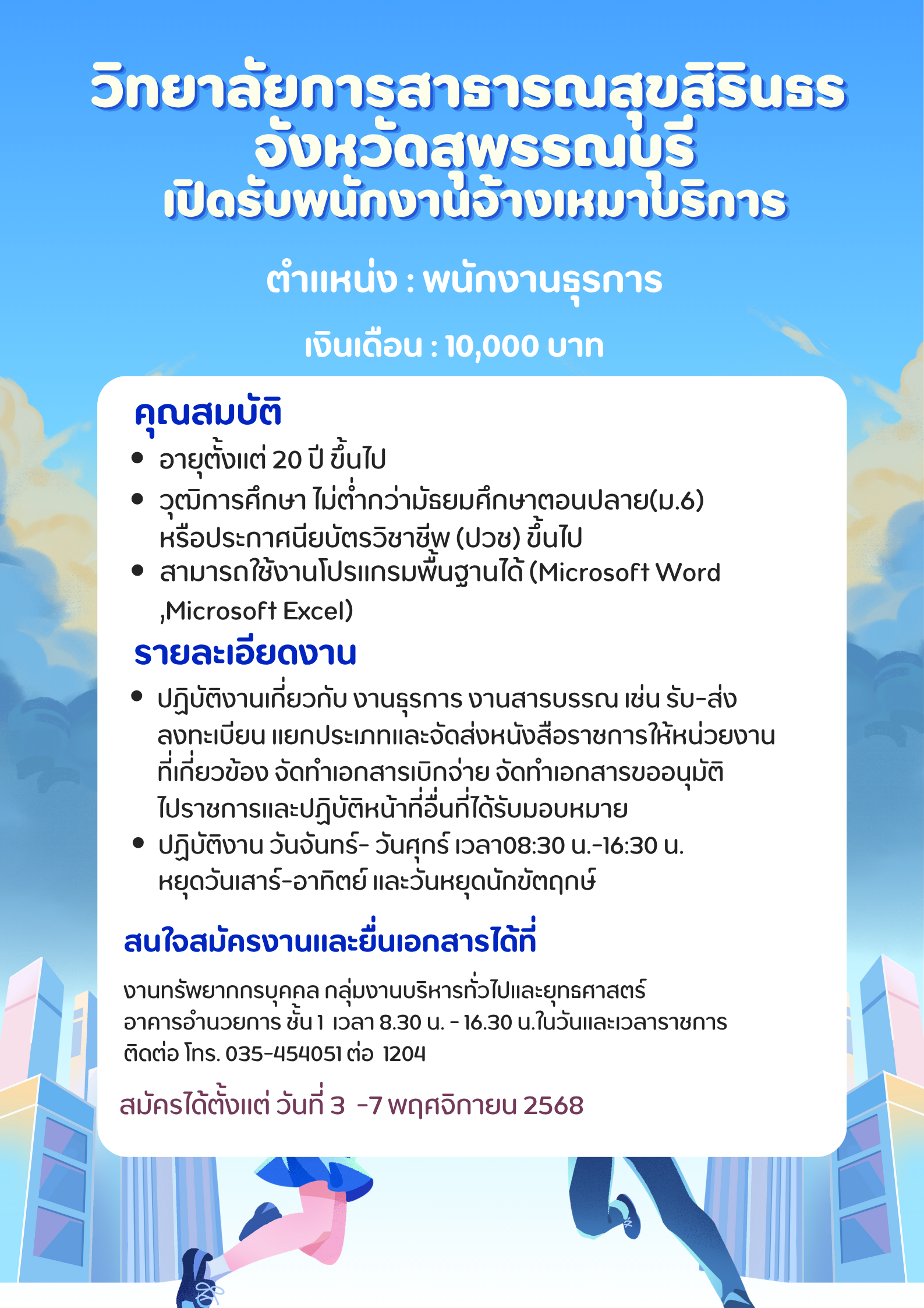 ประกาศ เรื่อง รับสมัครลูกจ้างเหมาบริการตำแหน่ง พนักงานธุรการ